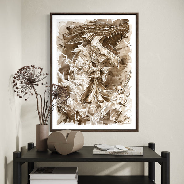 Using a single coffee tone, it conveys the dynamic energy of characters through variations in depth and shade.