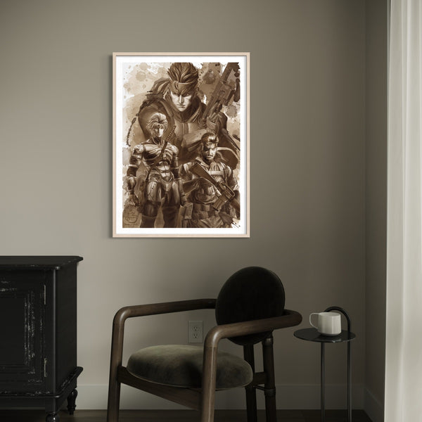 Using a single coffee tone, it conveys the dynamic energy of characters through variations in depth and shade.